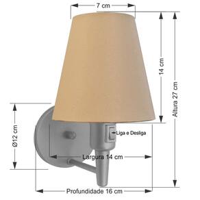Kit/2 Arandela de parede Cone Md-2013 Cinza C/ Inter Liga e Desl Cúpula Tecido PalhaAs arandelas Lustres Vivare são elementos versáteis e elegantes que podem transformar qualquer ambiente em um espaço cheio de estilo. Seja para adicionar uma iluminação suave, destacar uma parede ou criar um efeito de luz diferenciado.Dimensão:Cúpula em Tecido: 14x07x14cm