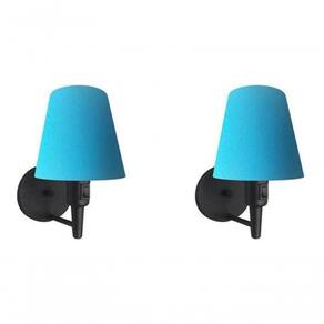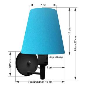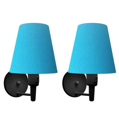 Kit/2 Arandela Cone Md-2013 Preto C/ Inter Liga E Desl Cúpula Em Tecido Azul Turquesa - Bivolt