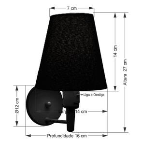 Kit/2 Arandela de parede Cone Md-2013 Preto C/ Inter Liga e Desl Cúpula Tecido PretoAs arandelas Lustres Vivare são elementos versáteis e elegantes que podem transformar qualquer ambiente em um espaço cheio de estilo. Seja para adicionar uma iluminação suave, destacar uma parede ou criar um efeito de luz diferenciado.Dimensão:Cúpula em Tecido: 14x07x14cm