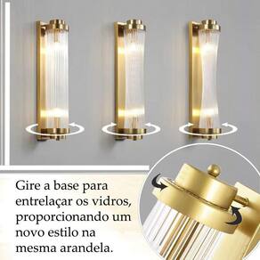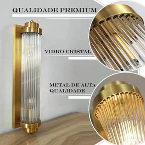Os cristais são o destaque desta peça, adicionando brilho e glamour à arandela. A combinação do dourado com cristais confere à arandela uma estética luxuosa e sofisticada, tornando-a uma peça de destaque na decoração de interiores.