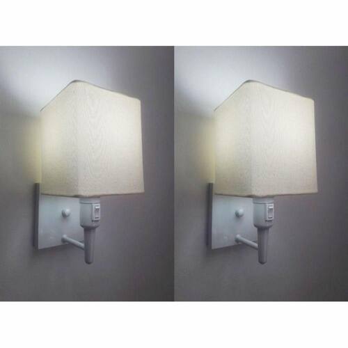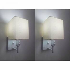Compre! Kit/2 Arandela de Cabeceira e Camarim Quadrada Md-2019 Branca C/ Inter Liga e Desl Cupula Algodao Cru
