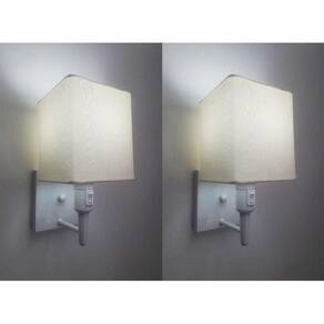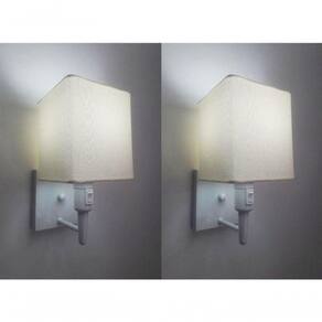 Kit/2 Arandela Quadrada Md-2019 Branco C/ Inter Liga E Desl Cúpula Em Tecido Algodão Crú - Bivolt