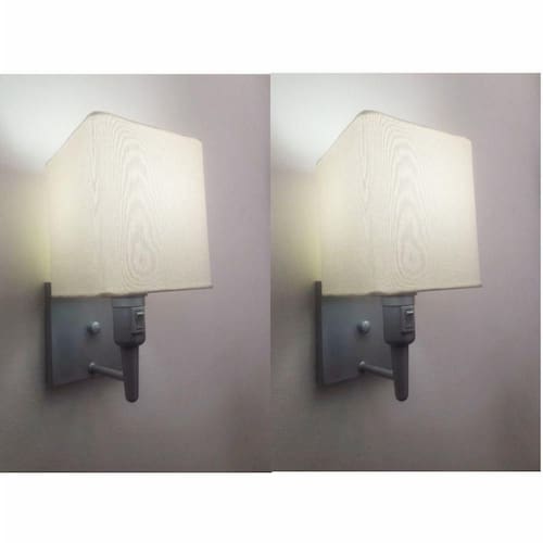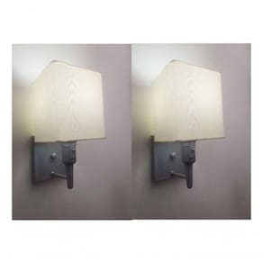 Kit/2 Arandela Quadrada Md-2019 Cinza C/ Inter Liga E Desl Cúpula Em Tecido Algodão Crú - Bivolt