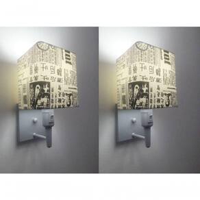 Kit-2 Arandela Quadrada Md-2019 Cinza C- Inter Liga E Desl Cúpula Em Tecido Ny-jornal - Bivolt