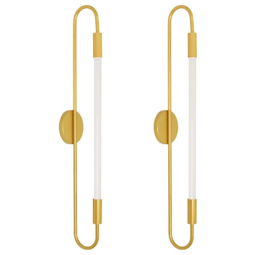 Tudo para iluminar seu ambiente com muito charme Perfeito para todos os ambientes Modelo: single light Cor es : dourado Material: alumínio Luminária: soquete g13 t8 led tubular 60cm Base canopla : 12 x 1.5cm Medida: 86 x 12.5cm Número de lâmpadas: 1 lâmpadas não inclusas Voltagem: 127v/220v Conteúdo da embalagem: 2 luminárias