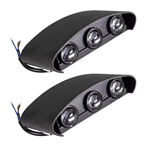 Grau de Proteção: IP54. Potência: 6W. Temperatura: 4.000K. Lúmens: 450. Voltagem Bivolt: 127-220V. Cor: Preta. Dimensões mm : 170 x 78 x 42. Contém 2 Unidades Neste Kit.