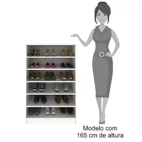 - Pode ser como sapateira acomodando até 18 pares de sapatos.