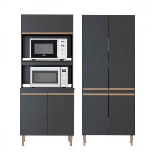Kit 2 Armários Para Cozinha Multiuso Forno/micro Menu Móveis Preto O Armarios para Cozinha Modulada Sabrina foram desenvolvidos para atender todas as suas necessidades do dia a dia com um design moderno, cheio de atitude, personalidade, funcionalidade, beleza e versatilidade. As Cozinhas sao a tendencia do momento e foi arquitetada com modulos uteis que vao facilitar a sua rotina diaria nos preparos dos alimentos e armazenamento dos utensilios e mantimentos, mantendo sua cozinha sempre organizada. Por se tratar de armarios de cozinha modulados voce pode ajustar os modulos conforme o espaco disponivel e montar diversas modulacoes diferentes para deixar o ambiente muito mais aconchegante. A elegancia fica por conta dos puxadores em perfil e os pes dando um toque unico de sofisticacao. Produzida com materiais de excelente qualidade, garantindo a durabilidade e vida util. O melhor em moveis no design atual aliando conforto, qualidade e otimos precos! Caracteristicas: Produzida em MDP de 15 mm Acabamento UV Texturizado Portas com Dobradica Metalica Porta Basculante com Pistao a Gas Puxadores Perfil PVC Pes Regulares ABS