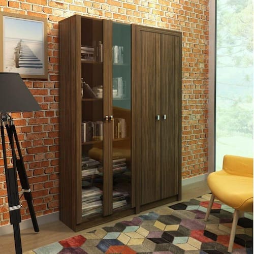 1x Armário Multiuso 2 Portas de Vidro 4 Prateleiras Nogal Largura: 60 cm Altura: 171 cm Peso: 29,9 kg Profundidade: 31,5 cm Necessita Montagem: Sim