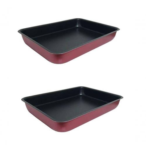 Kit com 2 Assadeiras Retangular Alta Cor Cereja N4 tamanho grande e borda alta com 5,5Cm.