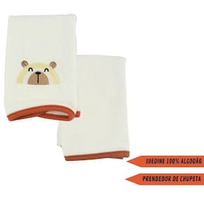 O kit de babinhas Hug é perfeito para acompanhar o bebê desde o nascimento, estando presente em todos os passeios que o bebê fizer, e no dia a dia, junto com a família. Seu tamanho é perfeito para que os papais possam colocá-la no ombro depois que o bebê mamar e precisar arrotar. Assim, caso volte algum leite do bebê, os papais não se sujarão. Também é ótimo ter o kit de babinhas Hug por perto para quando o bebê se sujar. Além disso, possui prendedor de chupeta na ponta, tornando-se assim, um objeto de apego para o bebê, perfeito para acalmá-lo e acompanhá-lo durante o sono. MINIMALISTA: A elegância da cor terracota somada aos detalhes desenhados fazem desse tema, uma escolha perfeita para a mamãe que adora peças clássicas