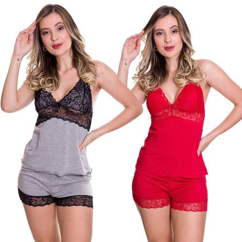 Este kit com 2 Baby doll é ideal para você que deseja conforto e sensualidade. Fica lindo no corpo, veste muito bem. Short com elástico na cintura e blusa modelo nadador nas costas.