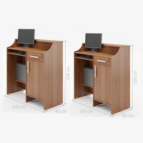Gaveta com corrediças metálicas, chave e porta cédulas; abaixo porta objeto com prateleira; pés com niveladores de altura.