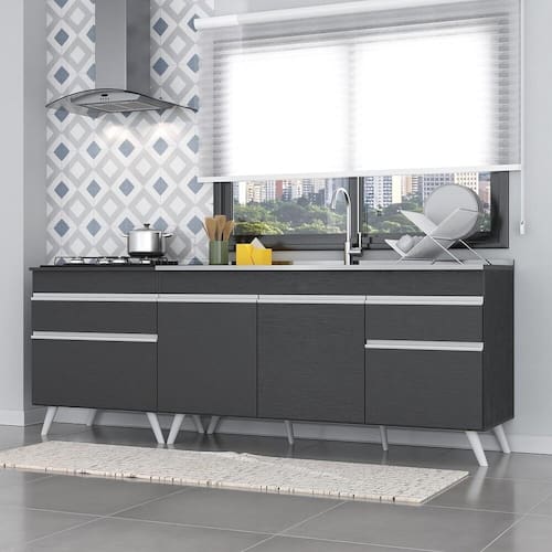 O Kit 2 Balcões Gabinete Pia 150 cm e Cooktop 70 cm Veneza Multimóveis é uma ótima solução para otimizar seu espaço e deixar a cozinha muito funcional. Com um excelente custo benefício e um amplo espaço interno, é produzido em MDP com acabamento acetinado (cerca de 20% de brilho), que garante maior durabilidade e resistência, possui pés retrô em polipropileno, que deixam o ambiente mais estiloso, puxadores em ABS e tampo em MDP 15mm com pintura de alta resistência. O kit possui balcão para cooktop (o recorte do tampo deve ser realizado na hora da montagem conforme a medida do seu fogão) com 1 gaveta e 1 porta, além de gabinete para pia (compatível com pia de 150 cm) com 1 gaveta e 3 portas. *Não acompanha cooktop e pia de inox.