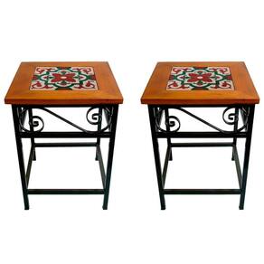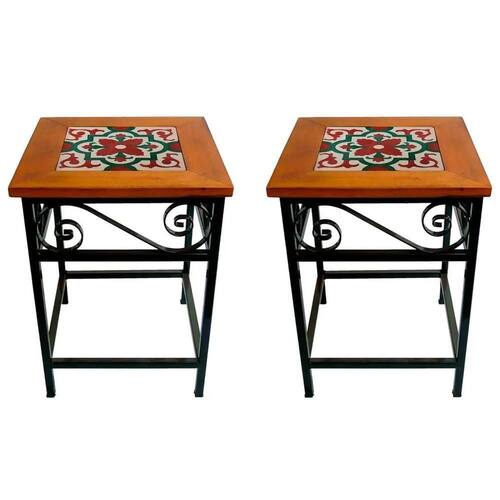 Kit 2 Bancos De Ferro E Madeira Rústico Com Ladrilho Hidráulico Ladrilho A3