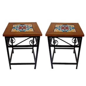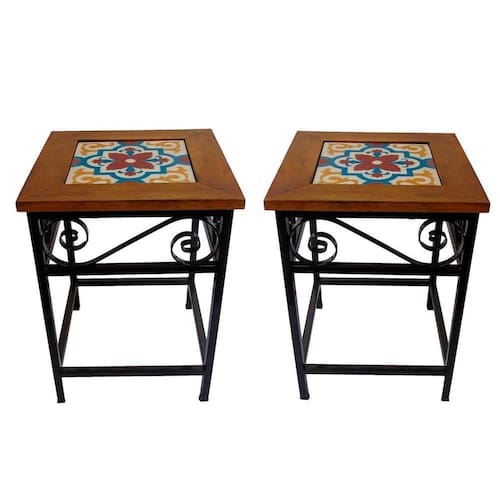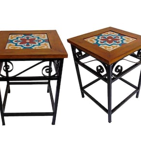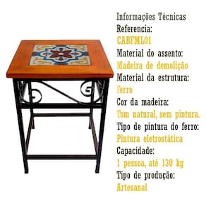 Kit 2 Bancos De Ferro E Madeira Rústico Com Ladrilho Hidráulico A1