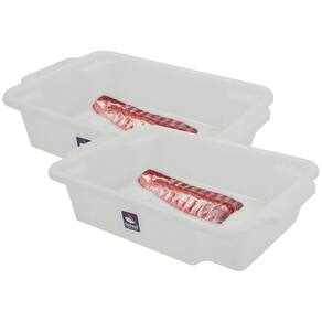 Kit 2 bandeja plástica para açougue multiuso carnes aves peixes branca 3,5l padaria refrigeração temperar geladeira A caixa multiuso de 3,5 litros linha organizatta é uma solução prática para armazenamento, possuindo alças que travam e garantem a segurança do conteúdo.