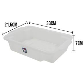 Ficha técnica: Conteúdo: - caixa multiuso 3,5l - cor: branco - desenvolvido em plástico pp polipropileno - livre de bpa bisfenol a - feito com material atóxico - indicado para freezer - capacidade: 3,5l - tramanho: 21,5 x 33 x 7 - peso: 120g