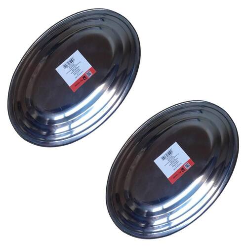 O Kit 2 Travessa Bandeja Restaurante Oval Inox 26 cm Porção possui as seguintes especificações técnicas: - Comprimento: 26 cm - Largura: 19 cm - Altura: 2 cm - Material: inox - Unidades no Kit: 2 Peças