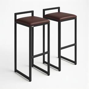 Kit 2 Banqueta Alta Cozinha Balcão Gourmet Bar Corino Bancos Cor:marrom