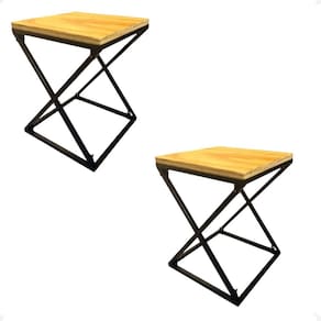 Kit 2 Banqueta Moderna em Ferro/Madeira 45x35Cm Desmontável Banqueta estilo industrial Com dimensões de A0,45m x L0,35m X C0,35m