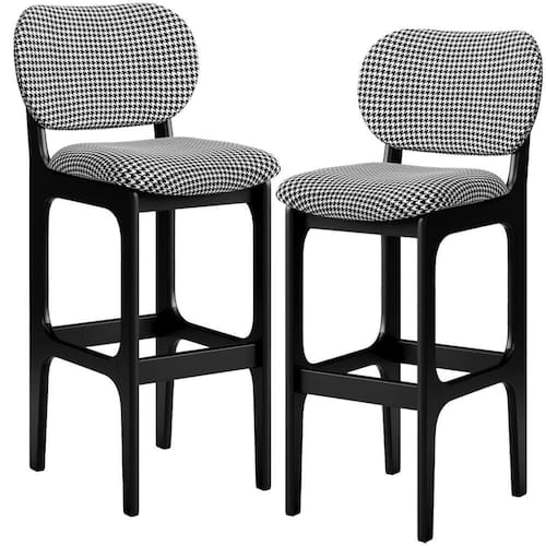 Amplamente sofisticado, o Kit 2 Banquetas Alta Bar Cozinha Sala Jantar Fixa Betta L02 Preto Suede Pied Poule - Lyam Decor irá agregar ainda mais valor em sua decoração!! Sendo capaz de compor muito bem o ambiente, é produzido com materiais de excelente qualidade, a resistente estrutura em madeira de Taeda, na cor preto, conta com apoio para os pés (que garante maior segurança), além do assento e encosto estofados super confortáveis e convidativos, que são revestidos em tecido Pied Poule, extremamente elegante.