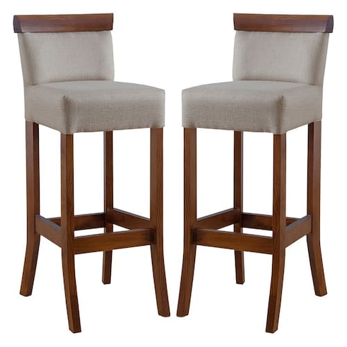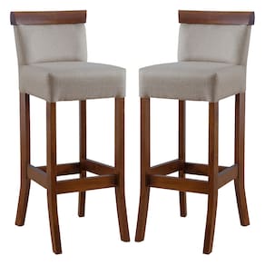 CARACTERÍSTICAS TÉCNICAS: - Produzida em Madeira Maciça Sustentável de Reflorestamento - Acabamento em Verniz na cor Imbuia - Encosto Estofado Preenchido com Espuma D18 - Assento Estofado Preenchido com Espuma D23 - Revestimento em Tecido Linho na cor Bege M58 - Banqueta Entregue Montada - Kit Composto por DUAS Banquetas