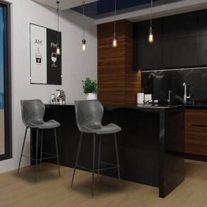 Conheça o Kit 2 Banquetas Altas com Encosto para Bancada Cozinha Pés Aço Penha R02 Sintético Cinza Grafite, da Mpozenato o complemento perfeito para sua cozinha, bancada ou área gourmet! Com um design moderno e slim, essa banqueta alta não é apenas uma peça de mobília, é uma afirmação.