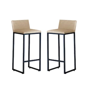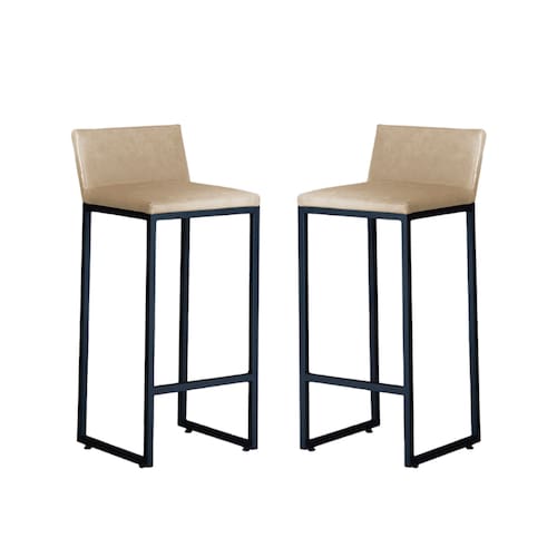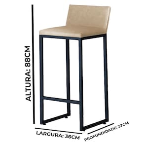 Kit 2 Banquetas Alta Dani Reforçada Decorativa Balcão Bancada Cozinha Bar Base Preta Courino - Bege