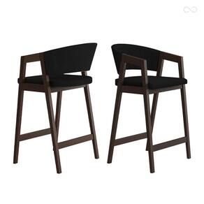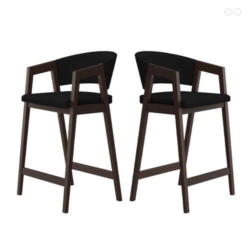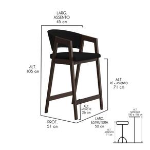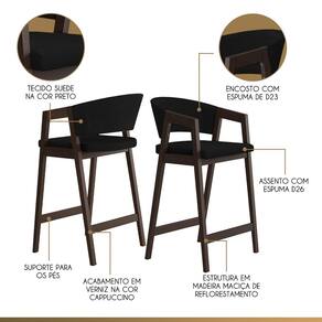 CARACTERÍSTICAS TÉCNICAS: - Produzido em Madeira Maciça; - Acabamento Verniz na Cor Capuccino; - Assento com Espuma D26; - Encosto com Espuma D23; - Revestido em Tecido Suede na Cor Preto.