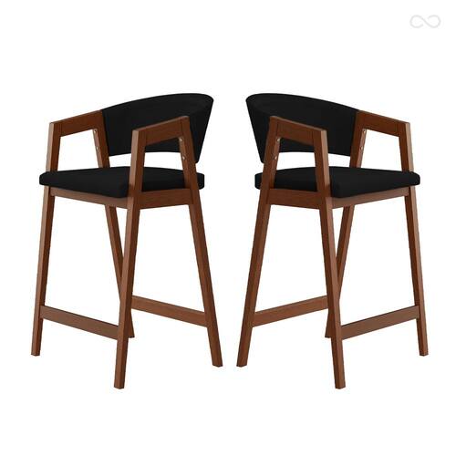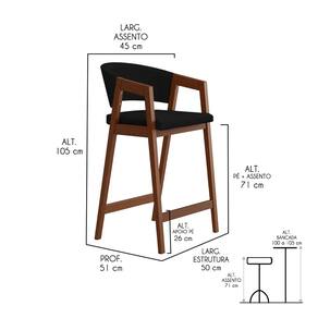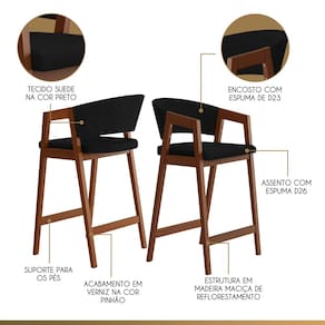 CARACTERÍSTICAS TÉCNICAS: - Produzido em Madeira Maciça; - Acabamento Verniz na Cor Pinhão; - Assento com Espuma D26; - Encosto com Espuma D23; - Revestido em Tecido Suede na Cor Preto.