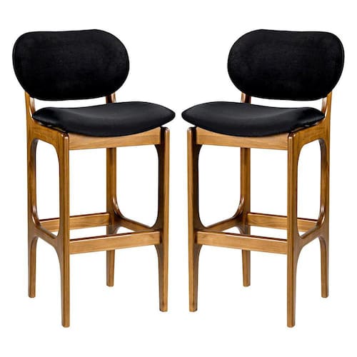 A Banqueta Alta Decor é o modelo ideal para completar o seu ambiente. Dispõe de um design atual com assento e encosto estofado dando um charme único ao móvel e um conforto maravilhoso. As banquetas são móveis versáteis que podem ser utilizados em diversos ambientes e funcionalidades, permitindo composições na decoração e agregando conforto e aconchego no espaço. Podem ser utilizadas em bancadas de salas conjugadas, mesas bistrô em sacadas gourmet ou onde você precisar. O assento estofado é preenchido com espuma D23 e o encosto com espuma D18, são revestidos com tecido suede na cor preto. A estrutura é desenvolvida em madeira maciça com acabamento em verniz na cor imbuia, garantindo sofisticação e durabilidade. CARACTERÍSTICAS TÉCNICAS: - Estrutura Produzida em Madeira Maciça - Encosto Anatômico em MDF Laminado - Acabamento em Verniz na cor Imbuia - Assento Preenchido com Espuma D23 - Encosto Preenchido com Espuma D18 - Revestido em Tecido Suede Preto L14 - Produto Entregue Montado INFORMAÇÕES TÉCNICAS: Altura: 104 cm Altura até Assento: 75 cm Largura do assento e encosto: 50 cm Profundidade:54 cm Peso:11 kg *Kit Composto por 2 Banquetas INFORMAÇÕES ADICIONAIS: Garantia para defeitos de fabricação conforme Código de Defesa do Consumidor. *ATENÇÃO: Entregas são feitas em horário comercial. Não nos responsabilizamos pela montagem, subir ou içar o móvel. **As imagens ambientadas são meramente ilustrativas e podem apresentar itens que não compõe o produto, as cores do produto podem variar de acordo com o monitor, a iluminação do ambiente ou sua percepção visual. ***Limpeza: Deve ser feita com pano macio e seco ou levemente umedecido com água e sabão neutro. Não devem ser utilizados abrasivos.
