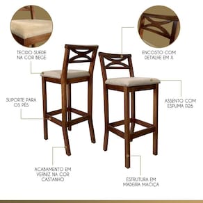 O KIT de Banquetas Alta com Encosto em X Madri Estofada vai deixar seu ambiente cheio de estilo. Possui um design atual, moderno e sofisticado. São ideais para bancadas, espaços gourmet, salão de festas, bares ou onde você preferir. Conta com uma estrutura resistente em madeira maciça de caixeta. Seu encosto possui detalhe em x, já seu assento é preenchido por espuma D23 e revestido em suede que proporcionam conforto e elegância.