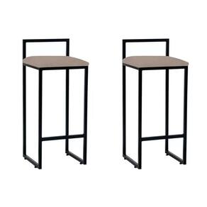 Kit 2 Banquetas Alta Industrial Bar Cozinha Bistrô Aço Dori Preta Assento Suede Bege - Cor: Preto