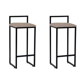 Kit 2 Banquetas Altas Industriais Em Aço Dori Preto Assento Suede Bege