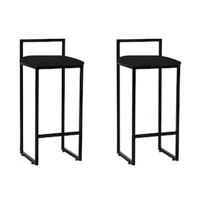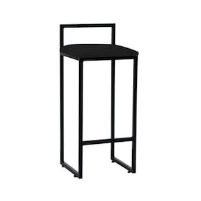 Kit 2 Banquetas Altas Industriais Em Aço Dori Preto Assento Suede Preto