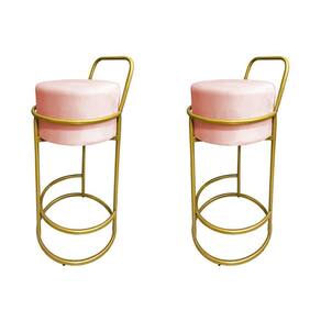 AS IMAGENS SÃO MERAMENTE ILUSTRATIVAS E PODEM SOFRER VARIAÇÕES DE COR E PEQUENOS DETALHES DE ACORDO COM O SEU MONITOR, ILUMINAÇÃO DO AMBIENTE E ATÉ MESMO A SUA PERCEPÇÃO 2 Banquetas Alta Redonda Base Dourada Veludo Rose