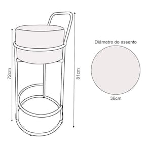 A banqueta alta redonda possui assento confortável e elegante, com base de ferro resistente que garante durabilidade. Ideal para cozinhas, bares ou áreas gourmet, combina estilo e funcionalidade.