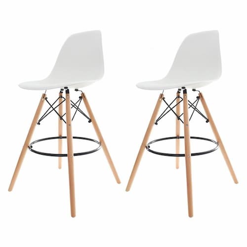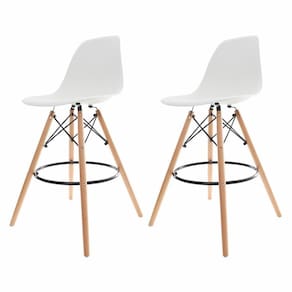 Kit 2 Banquetas Cadeiras Alta Com Encosto Alto Para Cozinha Americana Bar Bancada Balcão Ilha Area Gourmet Fixa Charles Eames EiffeL Base Madeira