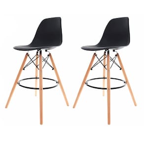 Kit 2 Banquetas Altas Com Encosto Alto Para Cozinha Americana Bancada Ilha Area Gourmet Charles Eames Eiffel Base Madeira Wood Preto Preto