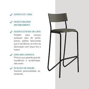 A Banqueta Carraro é o complemento ideal para diversos espaços, sendo a união de design moderno, funcionalidade e conforto. Seu encosto estofado e moldado anatomicamente, combinado com o assento estofado e o apoio para os pés, transformam esse item em uma peça muito confortável, além disso sua estrutura em aço garante maior resistência para o produto.
