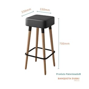 - Assento com Revestimento Sintético na cor Preta, estruturado com madeira de altíssima qualidade de reflorestamento, eucalipto seco evitando fungo e mofo.