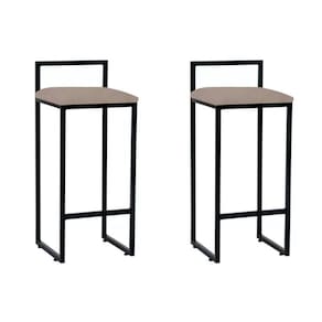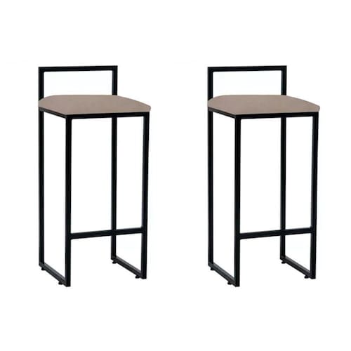 Kit 2 Banquetas Altas Industriais Em Aço Dori Preto Assento Suede Bege - Cor: Preto