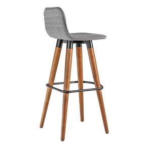 Kit 2 Banquetas Altas Luxo Linea Aço Preto Linho Cinza Base Carvalho