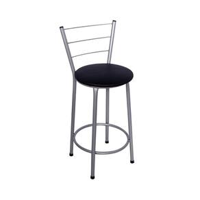 Kit 2 Banquetas Altas Prata com Encosto Assento Preto