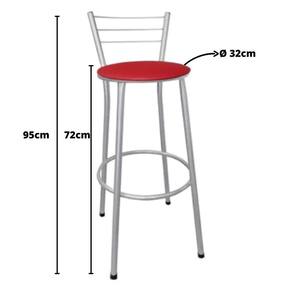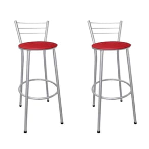 Kit 2 Banquetas Altas Prata com Encosto Assento Vermelho