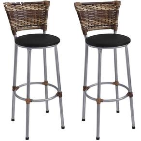 Banqueta Alta Prata Junco Capuccino com Assento Preto Fortmix