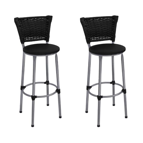 Kit 2 Banquetas Altas Prata Junco Preto com Assento Preto Fortmix