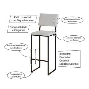 Características: Tipo: Banqueta Modelo: Nina Estilo: Industrial e Moderno Estrutura: Aço Carbono Preto Assento: Estofado Tecido do Assento: Corino Cor do Assento: Branco