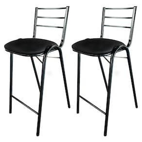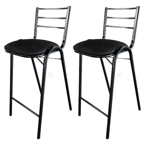 Estrutura em Ferro e assento em CorinoKit 2 Banquetas de Ferro Metal Industrial para Cozinha Gourmet Preto